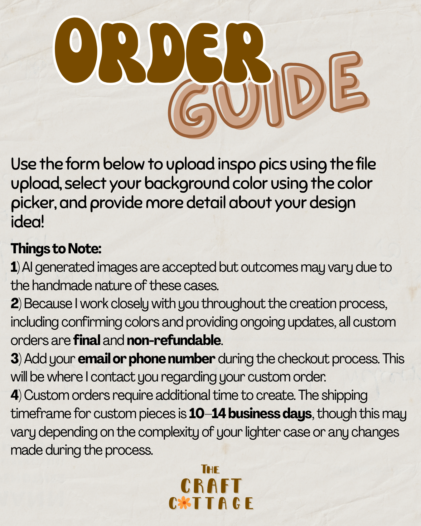 - Use the images and guides in this listing to order your case.